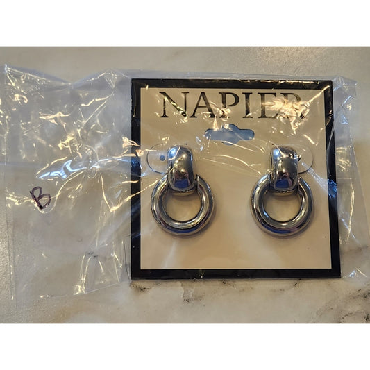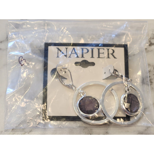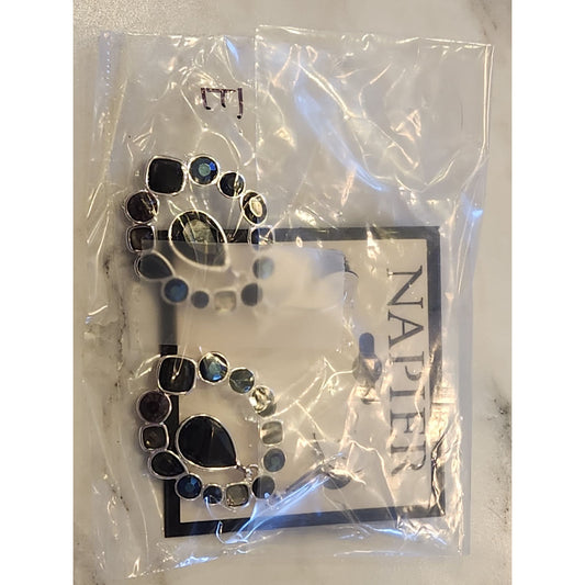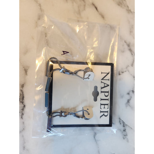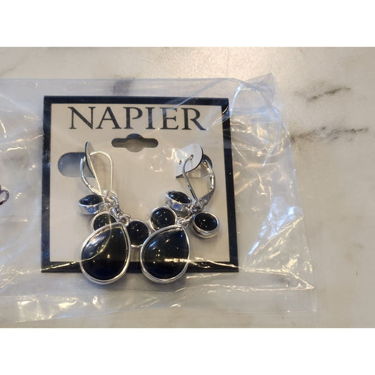 Napier Silver-Tone Drop Earrings With Black Stone Accents - Elegant And Stylish