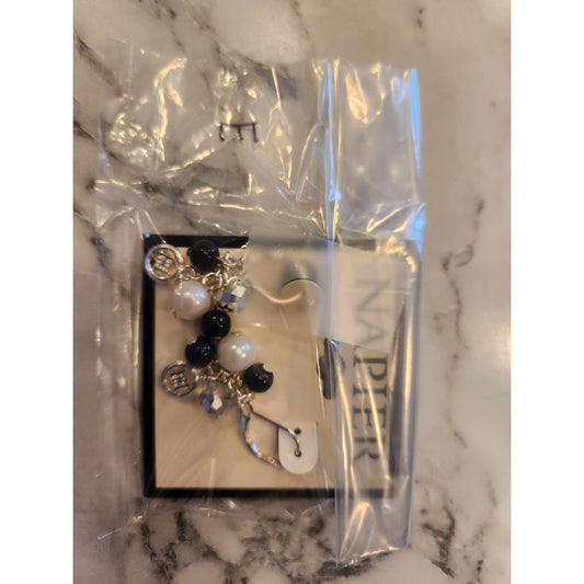 Napier Silver-Tone Drop Earrings With Black Pearl & Clear Beads For Women