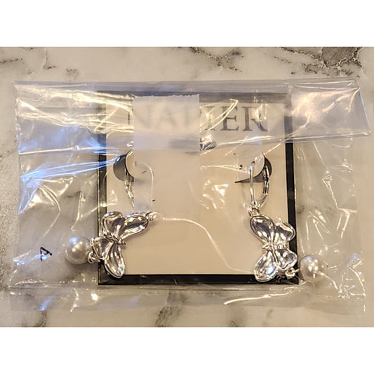 Napier Silver-Tone Butterfly & Faux Pearl Drop Earrings