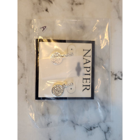 Napier Silver-Tone Crystal Pave Round Drop Earrings