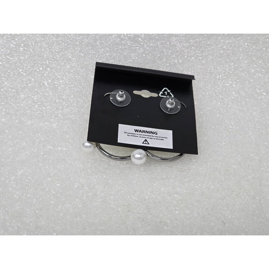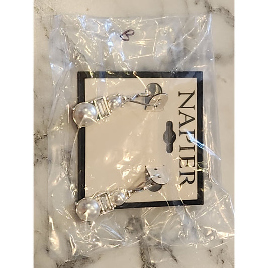 Napier Silver-Tone Earrings With Faux Pearl & Rhinestone Accents Lever Back