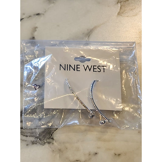 Nine West Silver-Tone Crystal Accent Curved Drop Earrings For Women