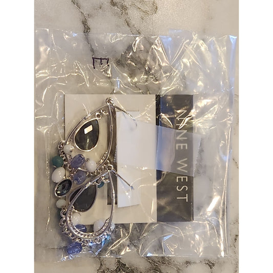 Nine West Silver-Tone Teardrop Earrings With Beaded Accents & Faux Gemstones