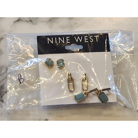 Nine West Gold-Tone & Light Blue Stone 3-Pair Earring Set