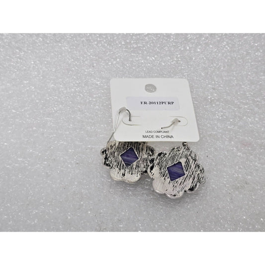 Purple Diamond-Shaped Silver Tone Earrings Fish Hook Backs Southwestern Style