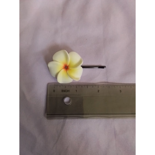 Yellow Plumeria Flower Hair Clip Bobby Pin Hawaiian Style Faux Flower