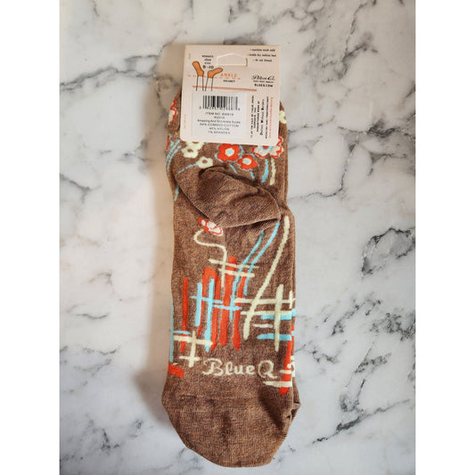 You're All Amazing Women's Ankle Socks Blue Q 5-10 Cotton Floral Design Brown