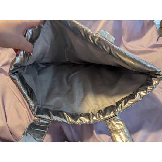 Bath & Body Works Silver Metallic Quilted Tote Bag With Inner Lining Puffy