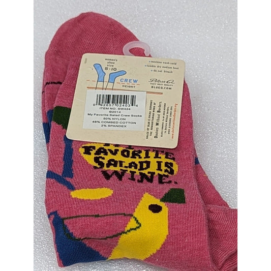 Blue Q Crew Socks Women's Shoe Size 5-10 My Favorite Salad Is Wine