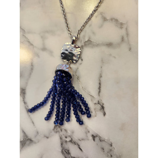 Blue Beaded Tassel Necklace & Earrings Set Nickel Free For Sensitive Ears
