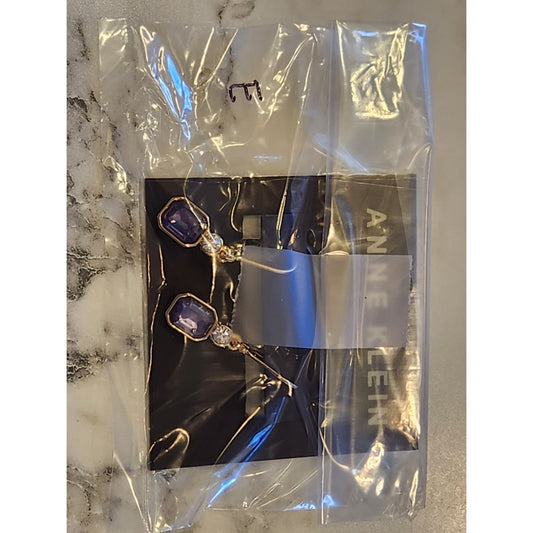 Anne Klein Gold-Tone Drop Earrings With Purple & Clear Crystals