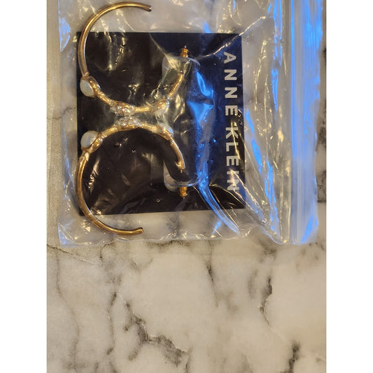Anne Klein Gold-Tone Hoop Earrings With Faux Pearl & Crystal Accents