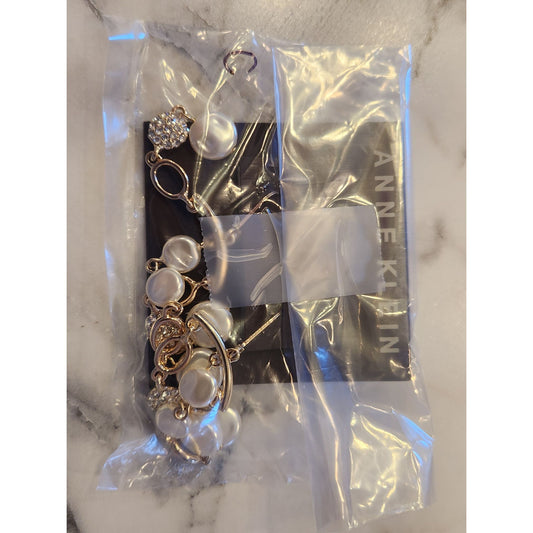 Anne Klein Gold-Tone Drop Earrings With Faux Pearls & Crystal Accents