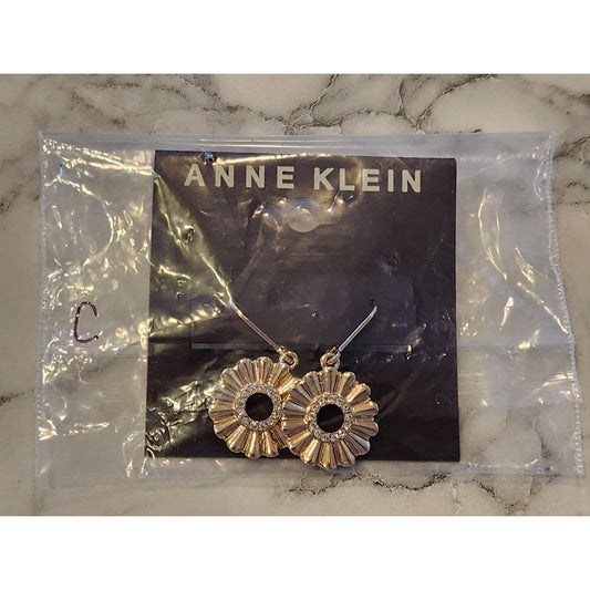 Anne Klein Gold-Tone Floral Drop Earrings With Rhinestone Accents