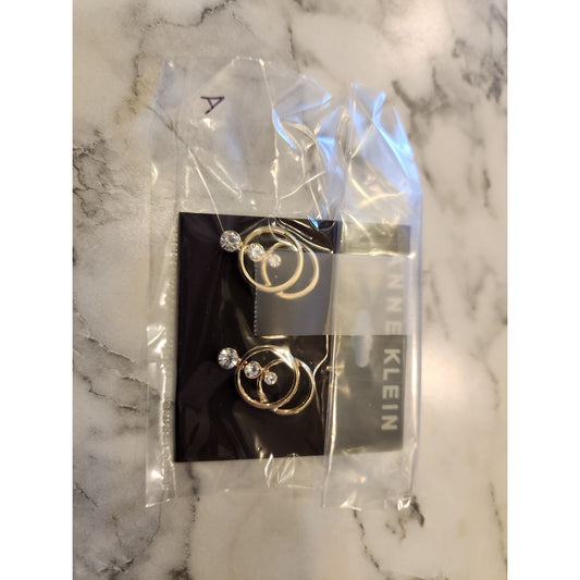 Anne Klein Gold-Tone Double Circle Earrings With Clear Crystal Accents