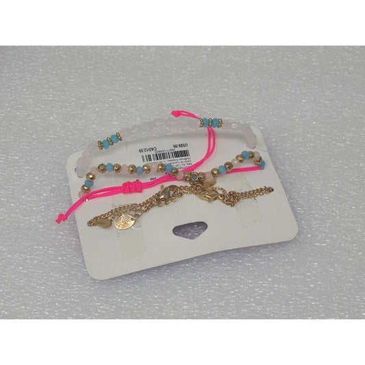 Claire's Bracelet Set of 4 Beads Chain Pink / Blue / Gold
