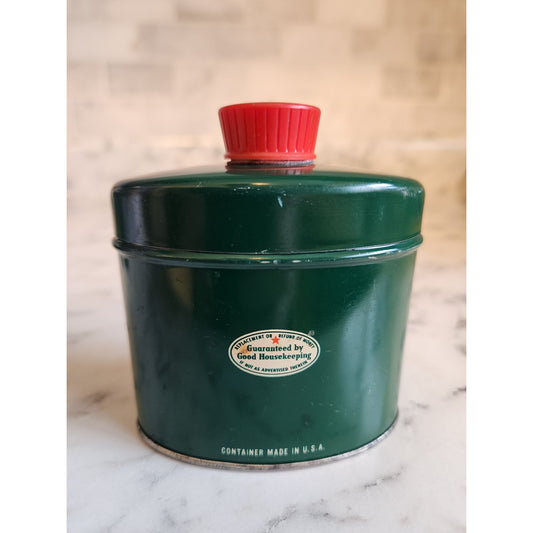 Vintage Avon Talc For Men Green Tin With Red Cap 2 5/8 Oz Made In USA