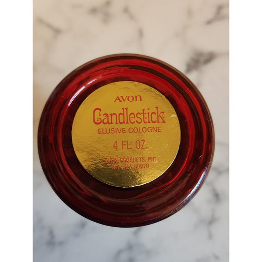 Vintage Avon Candlestick Elusive Cologne Bottle 4 Fl Oz Red Glass Swirl Design