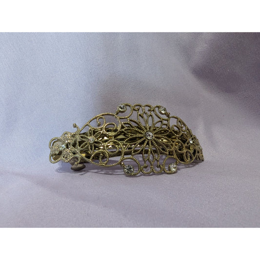 Vintage Antique-Style Filigree Hair Barrette With Rhinestones