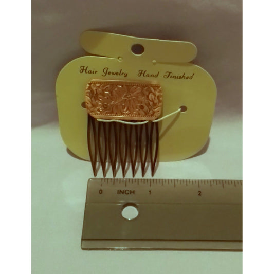 Vintage Hand-Finished Copper Hair Jewelry Comb Etched Intricate Floral Design