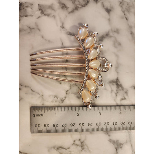 Elegant Faux Pearl & Rhinestone Hair Comb Bridal Formal Wedding Rose Gold Tone