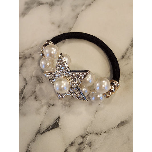 Star-Shaped Hair Tie With Faux Pearls & Rhinestones
