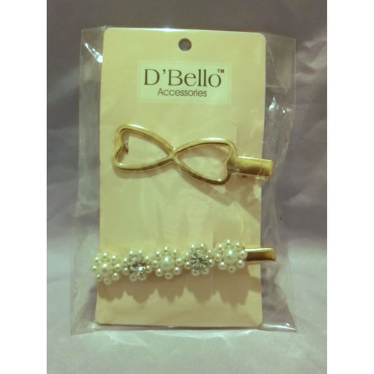 D'Bello Gold Tone Bow & Faux Pearl with Rhinestone Hair Clips Barrettes Set Of 2
