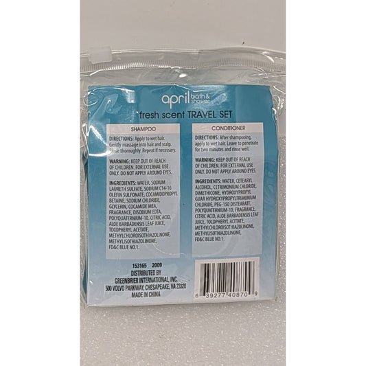April Bath & Shower Fresh Scent Moisturizing Shampoo & Conditioner Travel Set