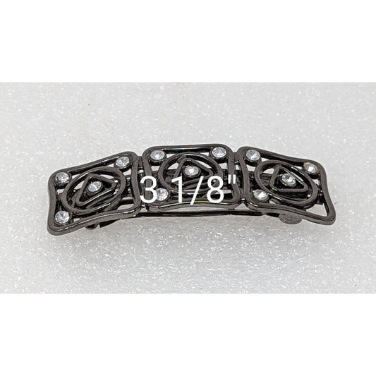 Vintage Metal Hair Clip With White Rhinestones 3 1/8" X 1"