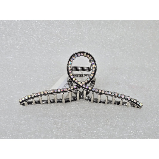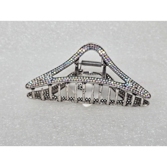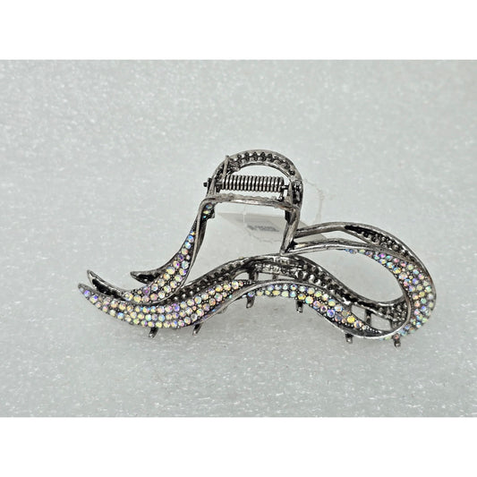Iridescent Rhinestone Silver Hair Claw Clip Elegant Design For All Hair Types