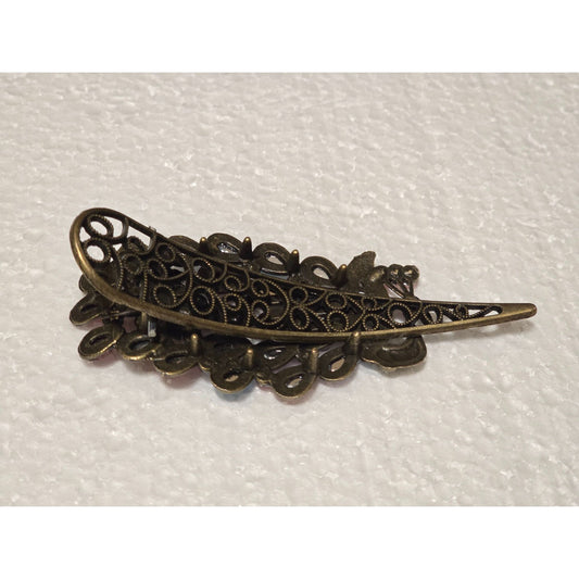 Rhinestone Bronze Tone Hair Claw Clip With Twist Design