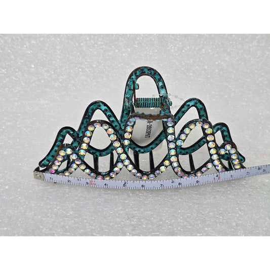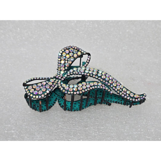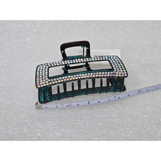 Elegant Rhinestone Hair Claw Clip Iridescent Accents & Metallic Teal Finish