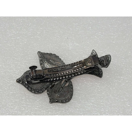 Vintage Amber Rhinestone Tree Hair Barrette Copper Tone