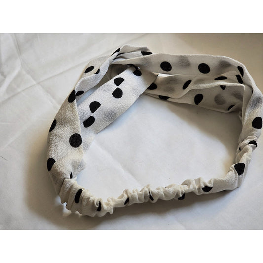 Black & White Polka Dot Elastic Twisted Headband For Women