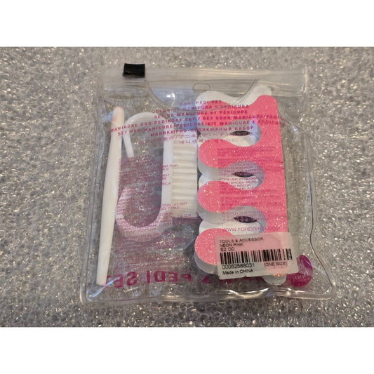 Forever 21 Neon Pink Glitter Mani & Pedi Set Toe Separators Nail Brush & Cuticle