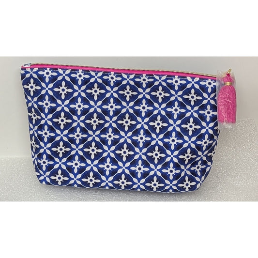 Estée Lauder Recycled Fabric Makeup Cosmetic Bag Blue Floral & Geometric Design