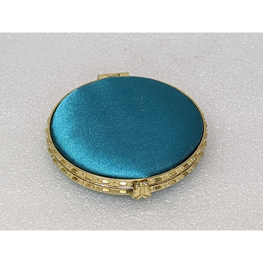Embroidered Flower Hand Purse Mirror Compact Teal Round