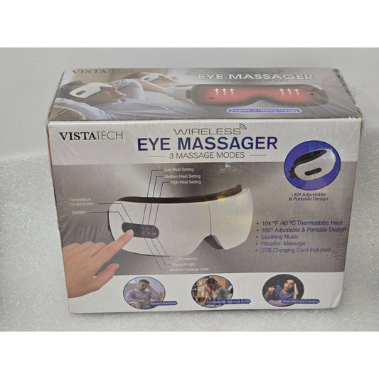 VistaTech Wireless Eye Massager 3 Modes Heating Vibration Music 180° Adjustable