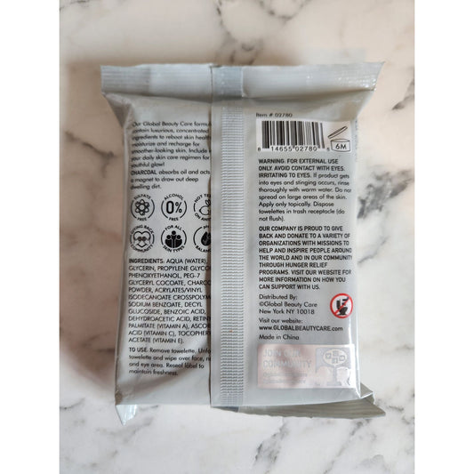 Global Beauty Care Charcoal Cleansing Cloths 25 Count For Makeup Removal & Skincare