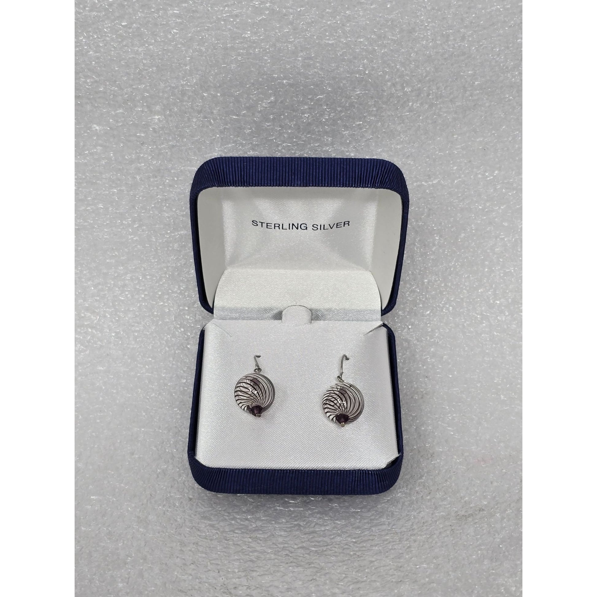 .925 Sterling Silver Handblown Artisan Glass Dangle Earrings With Purple Accents