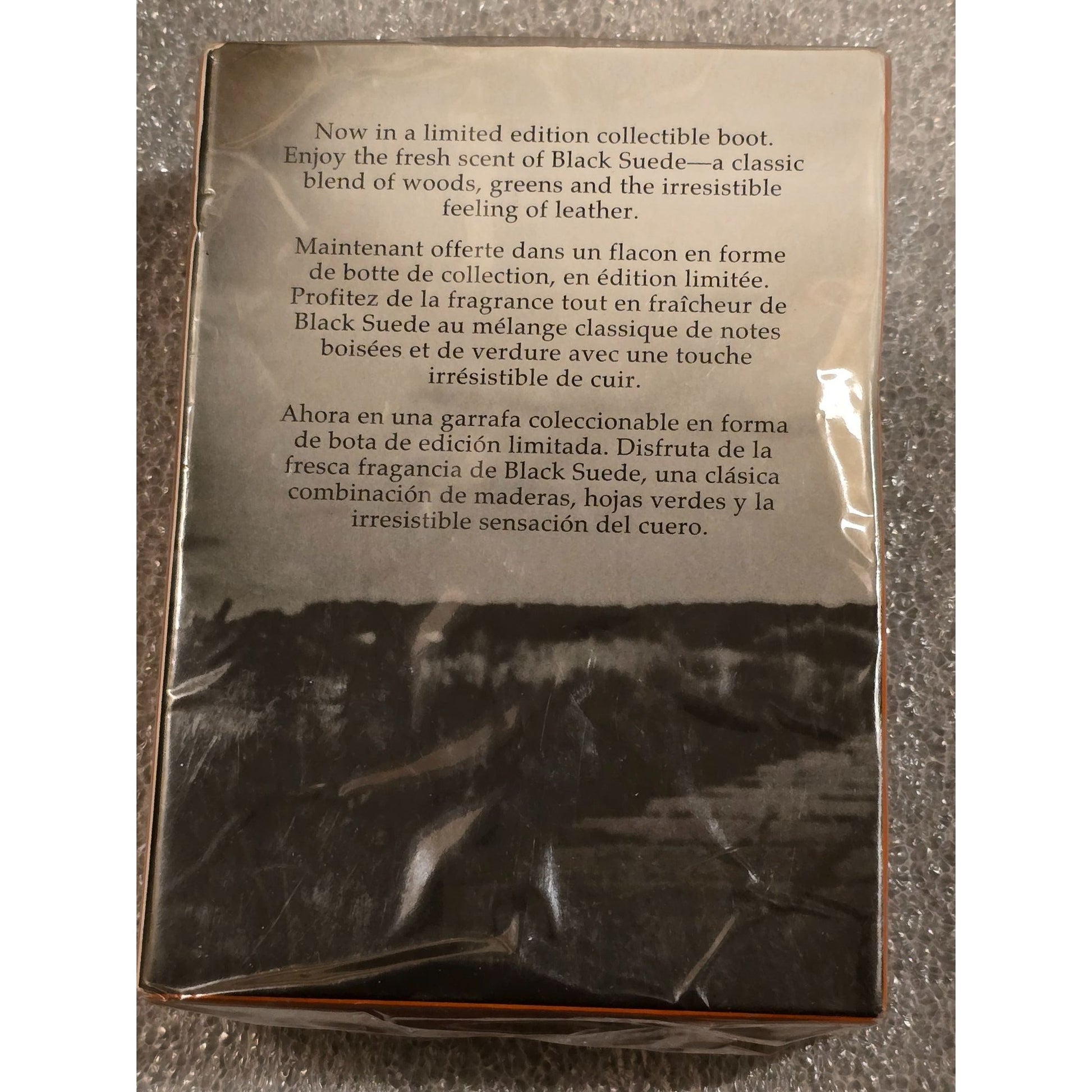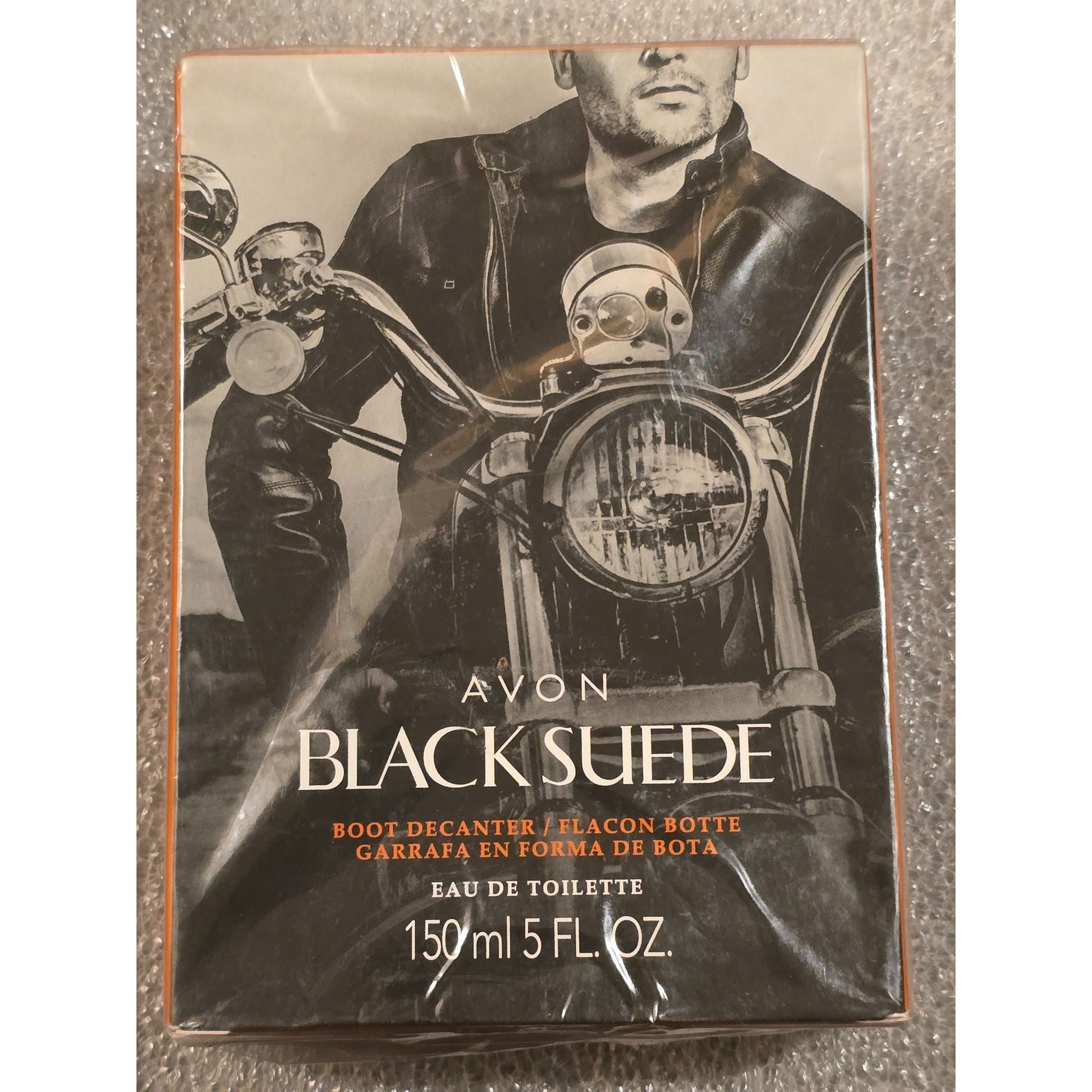 This limited edition Avon Black Suede eau de toilette features a unique collectible boot design. A sophisticated blend of woods, greens, and leather.