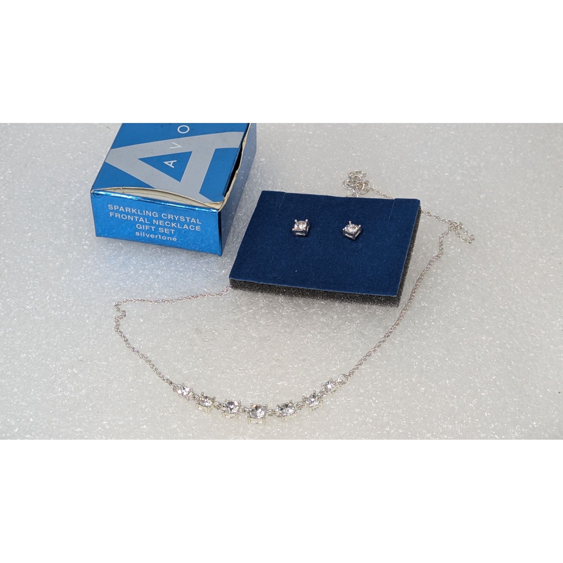 Avon Sparkling Crystal Frontal Necklace & Earrings Gift Set In Silvertone