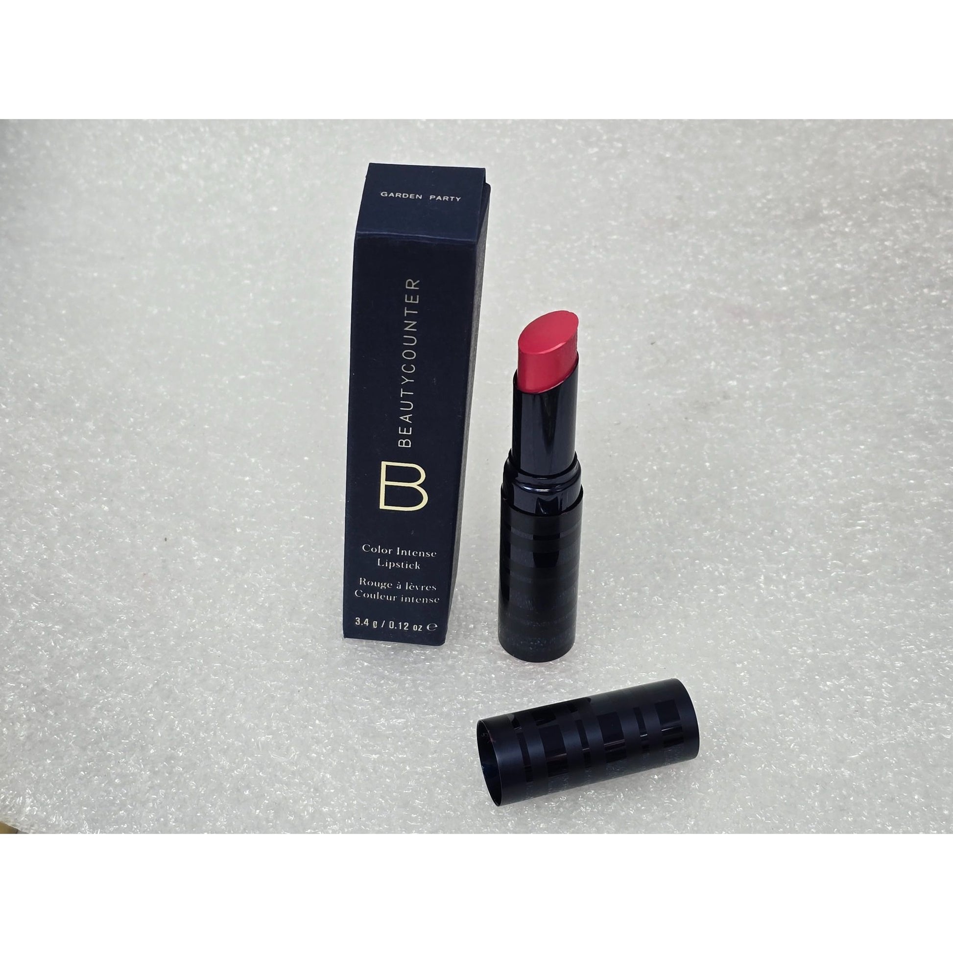 Beautycounter's Color Intense Lipstick in the shade Garden Party provides a vibrant, long-lasting color with a semi-matte finish. Its creamy formula ensures smooth application and comfortable wear throughout the day.