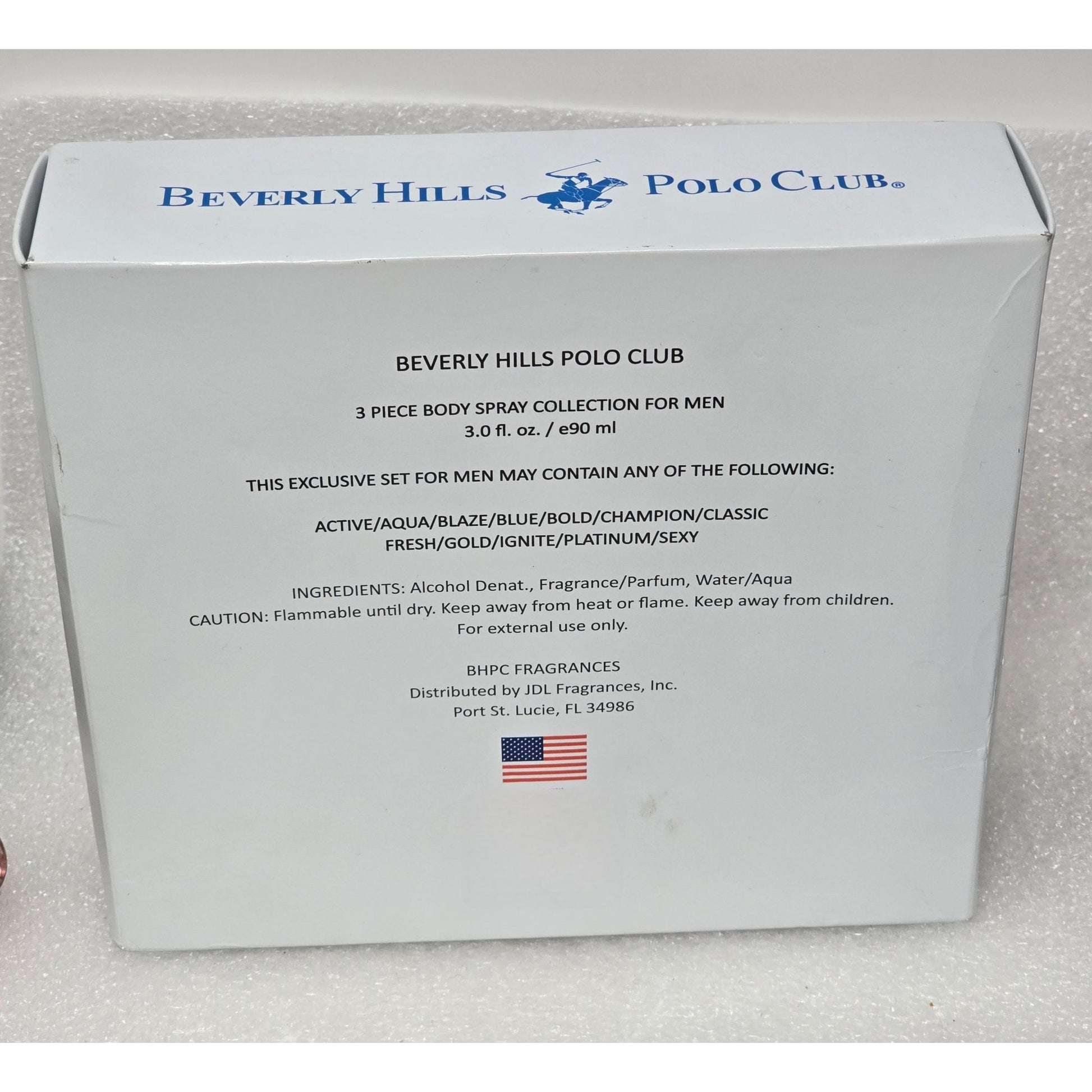 Beverly Hills Polo Club 3 Piece Mens Body Spray Collection Set Fresh Blue Blaze