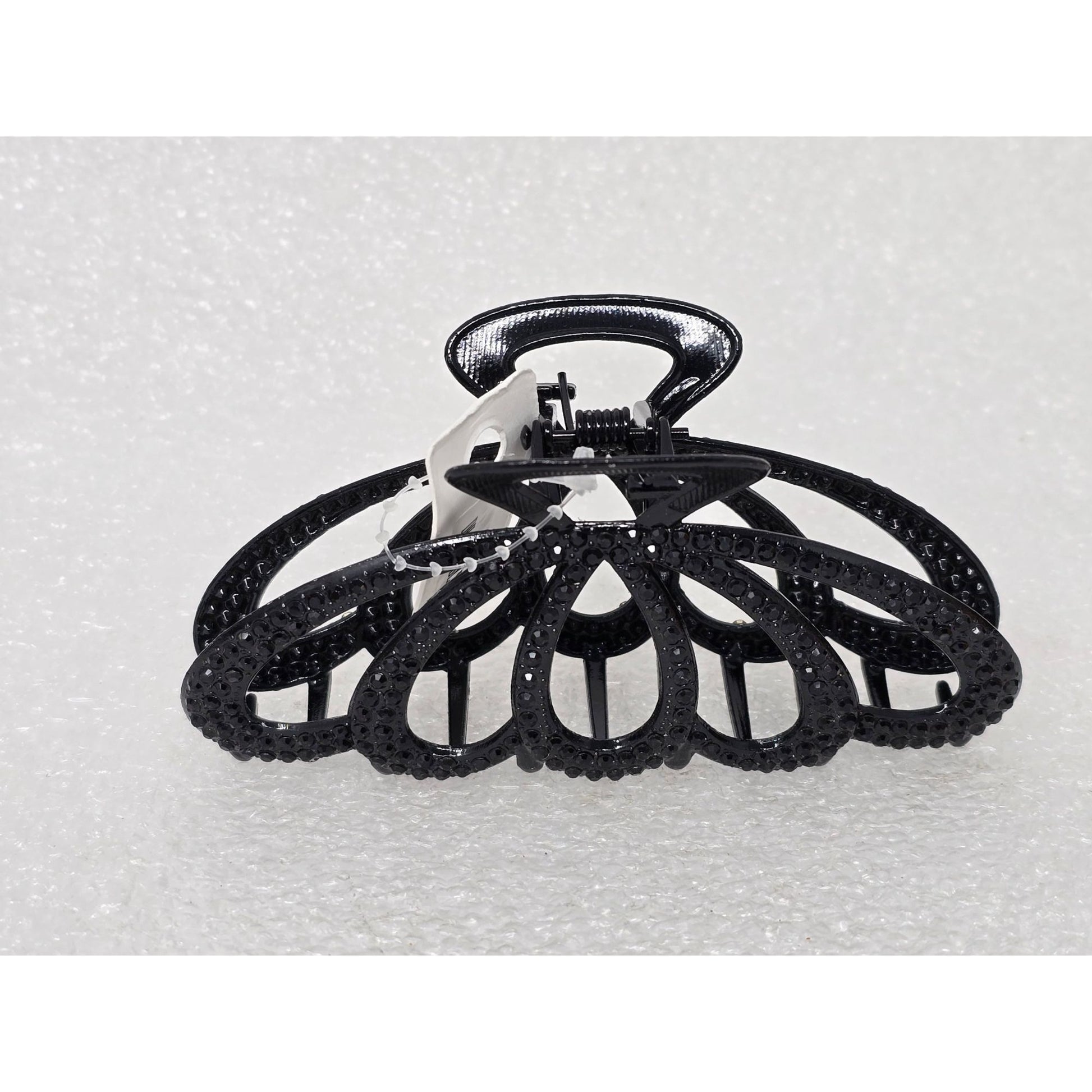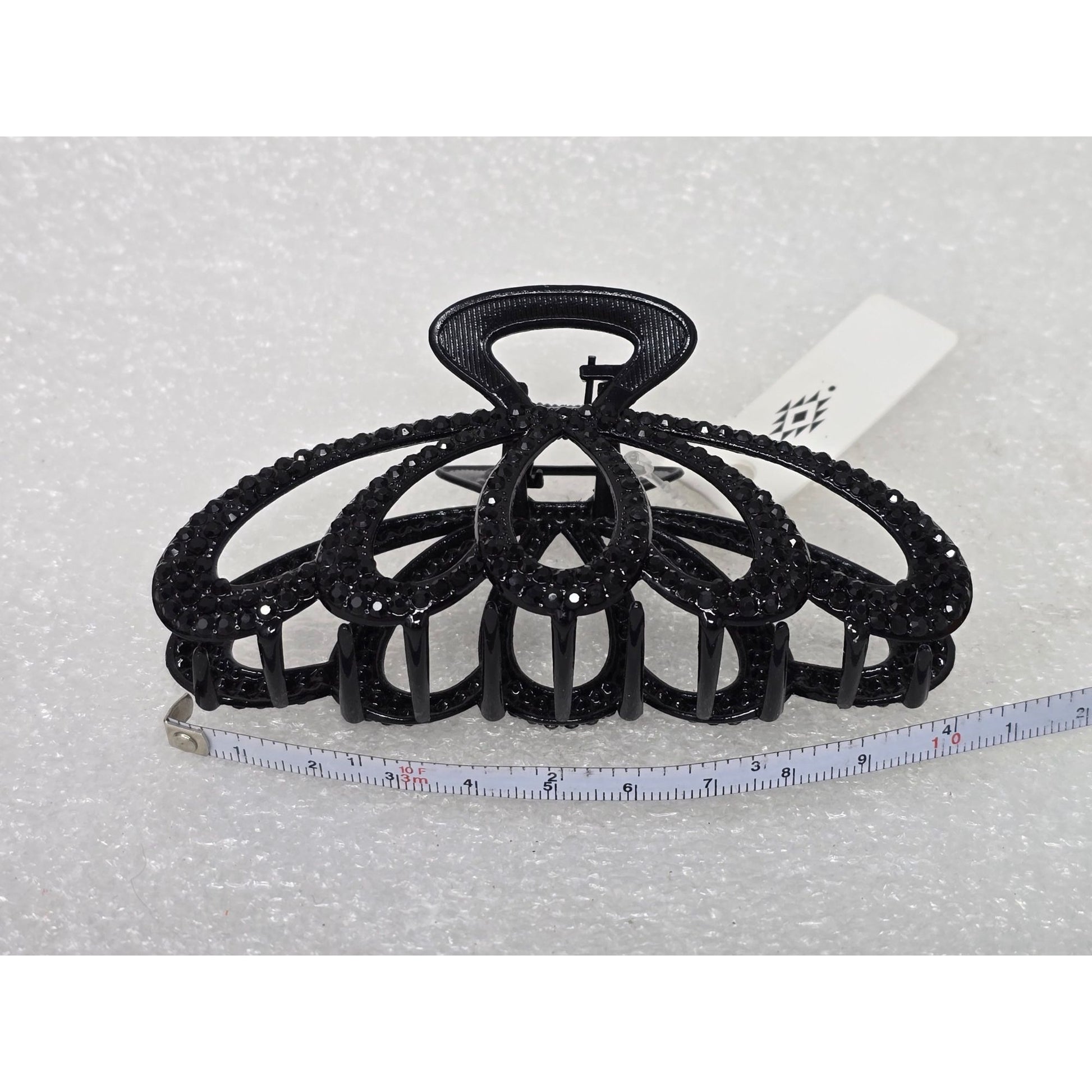 Black Decorative Hair Claw Clip With Rhinestone Detailing For Women Large Size