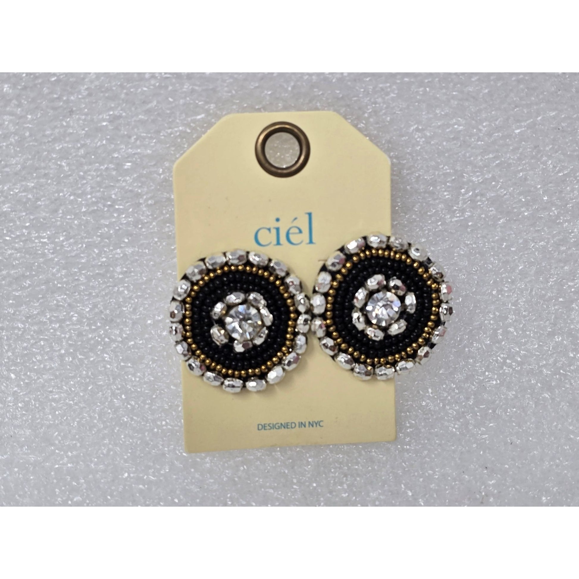 Ciel Handmade Black & Gold Beaded Earrings With Crystals Round Design