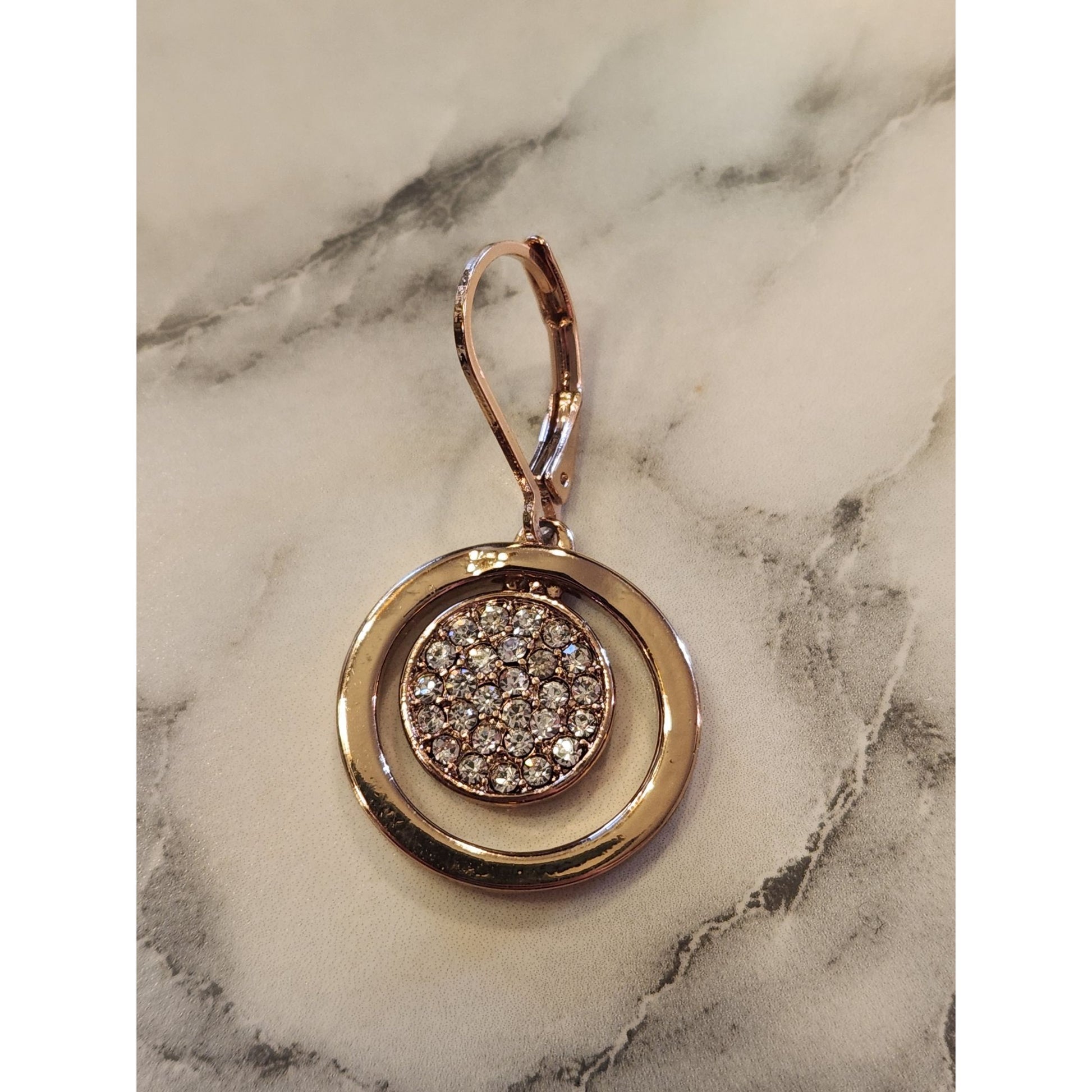These rose gold-tone earrings feature a sophisticated design with crystal-embellished accents. Designed for elegance, they enhance any polished outfit.