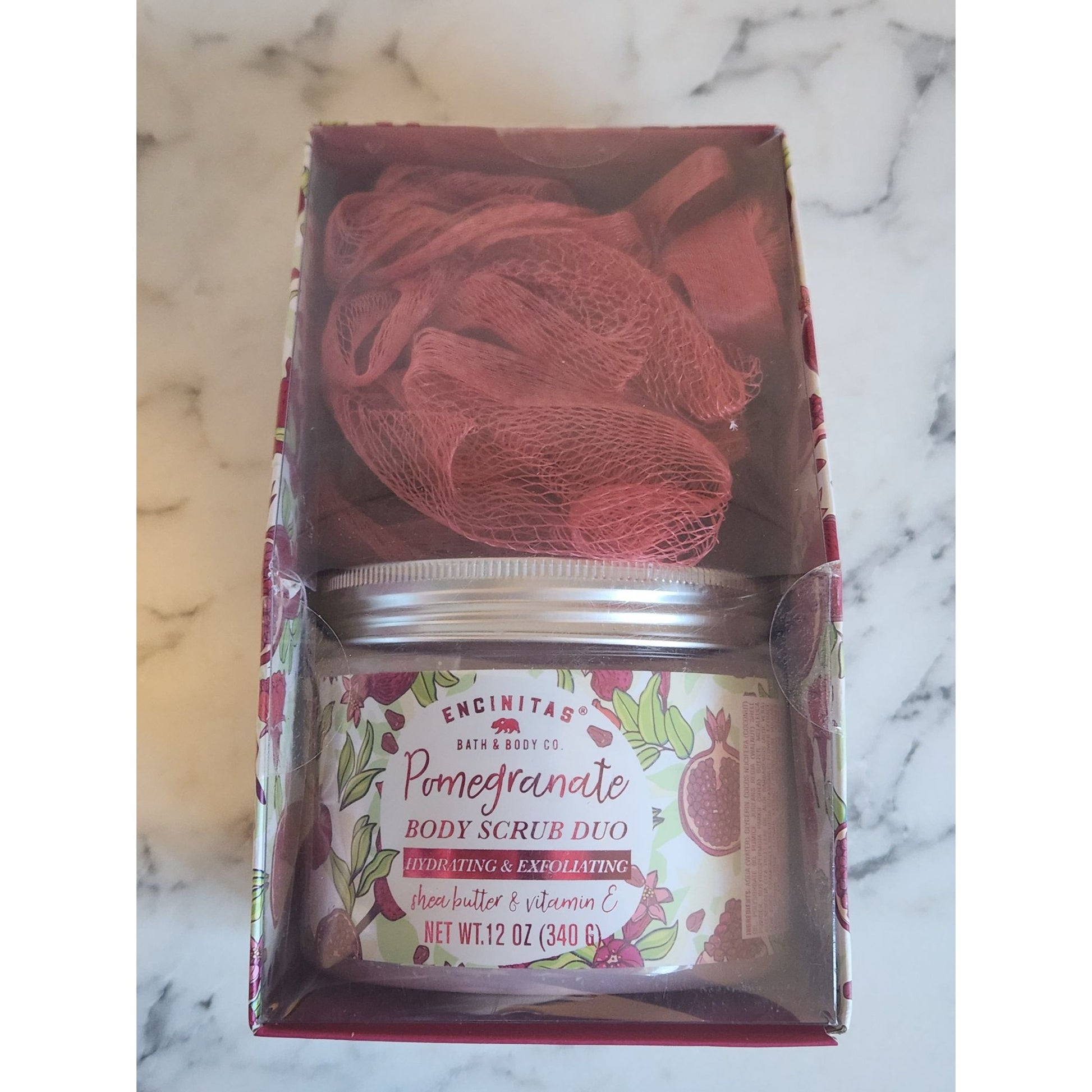 Encinitas Pomegranate Body Scrub Duo Hydrating & Exfoliating Set With Mesh Puff