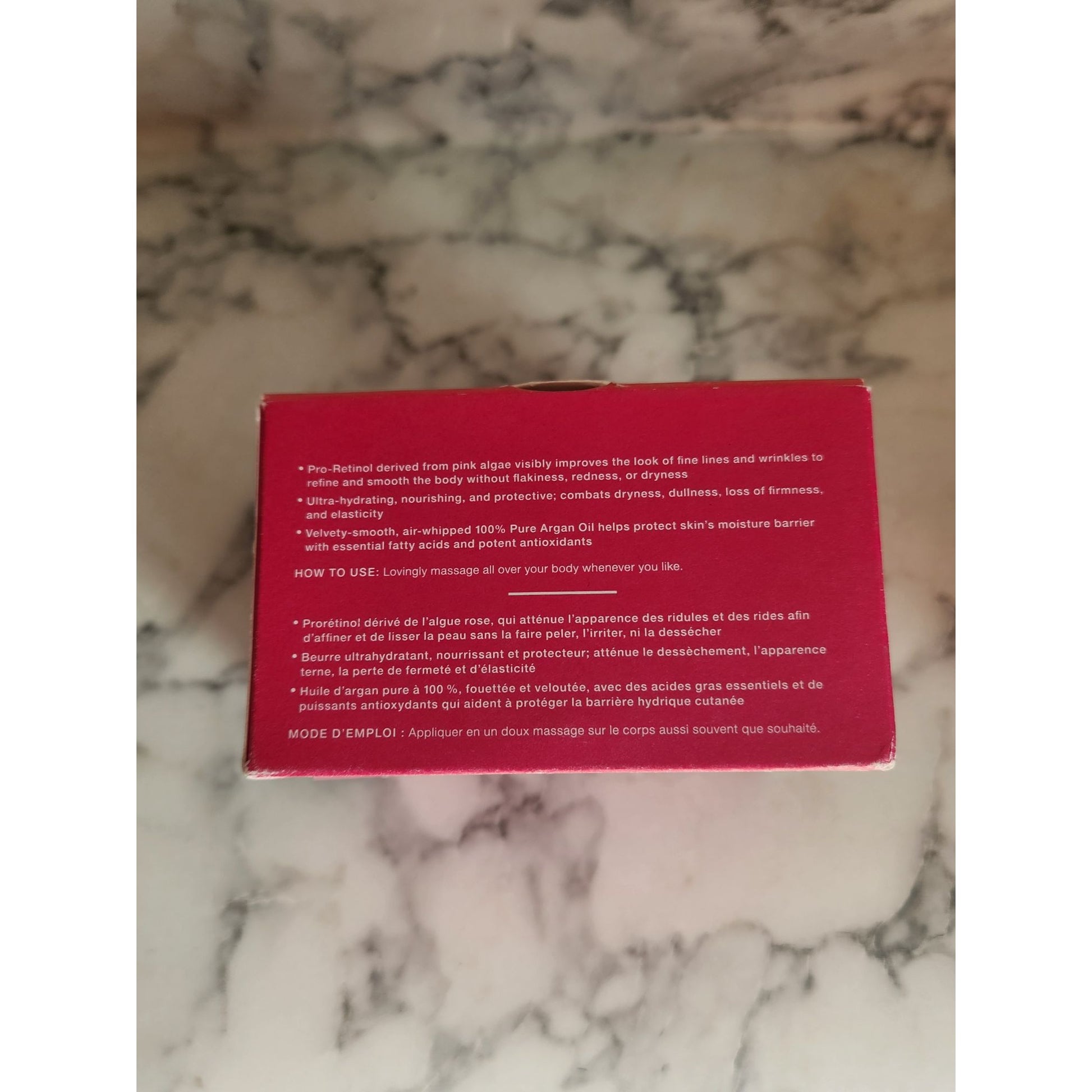 This body butter, enriched with pro-retinol and 100% pure argan oil, helps improve skin texture and firmness. It supports skin's moisture barrier, leaving your skin feeling smooth and rejuvenated. Apply it to any area of your body for a luxurious, hydrating experience.