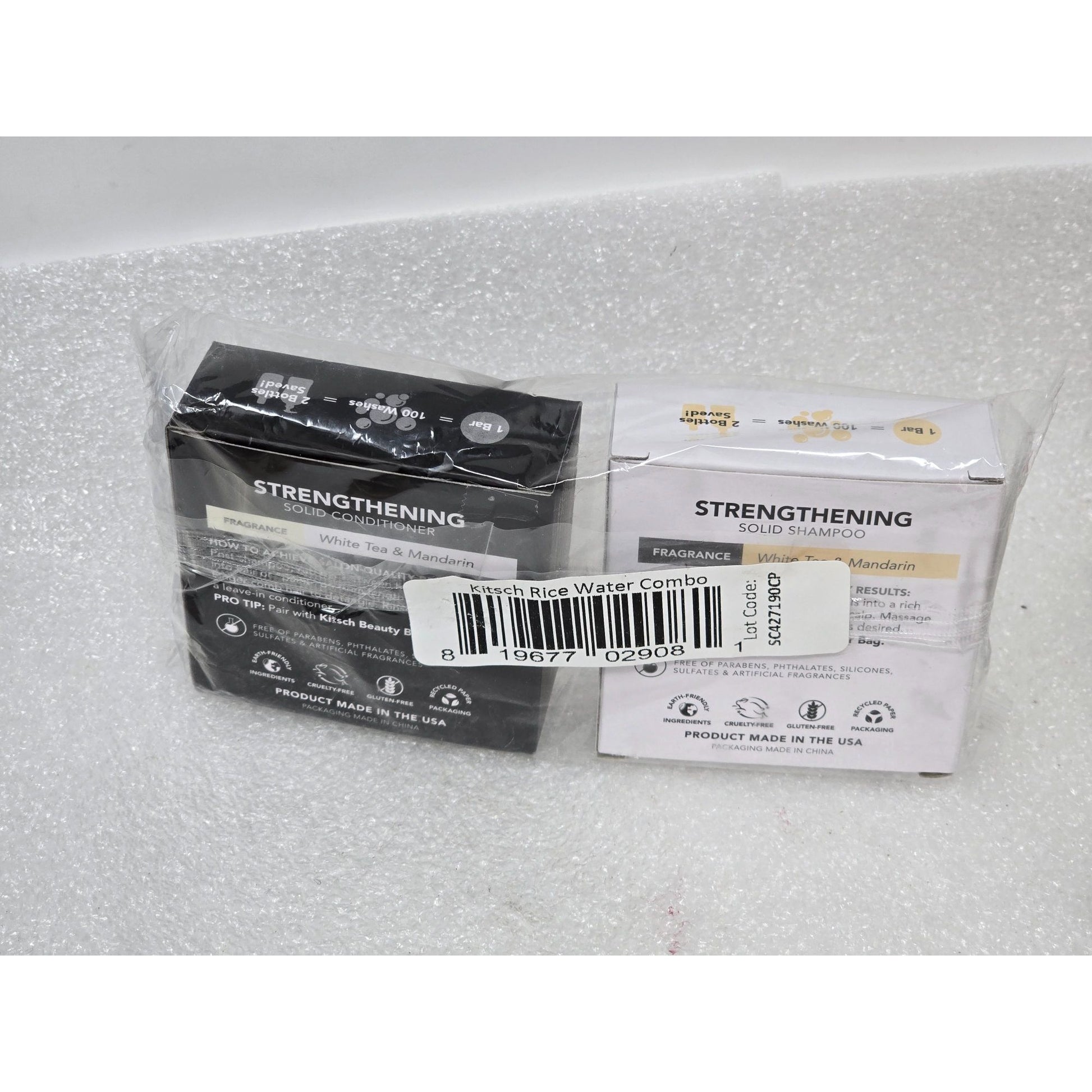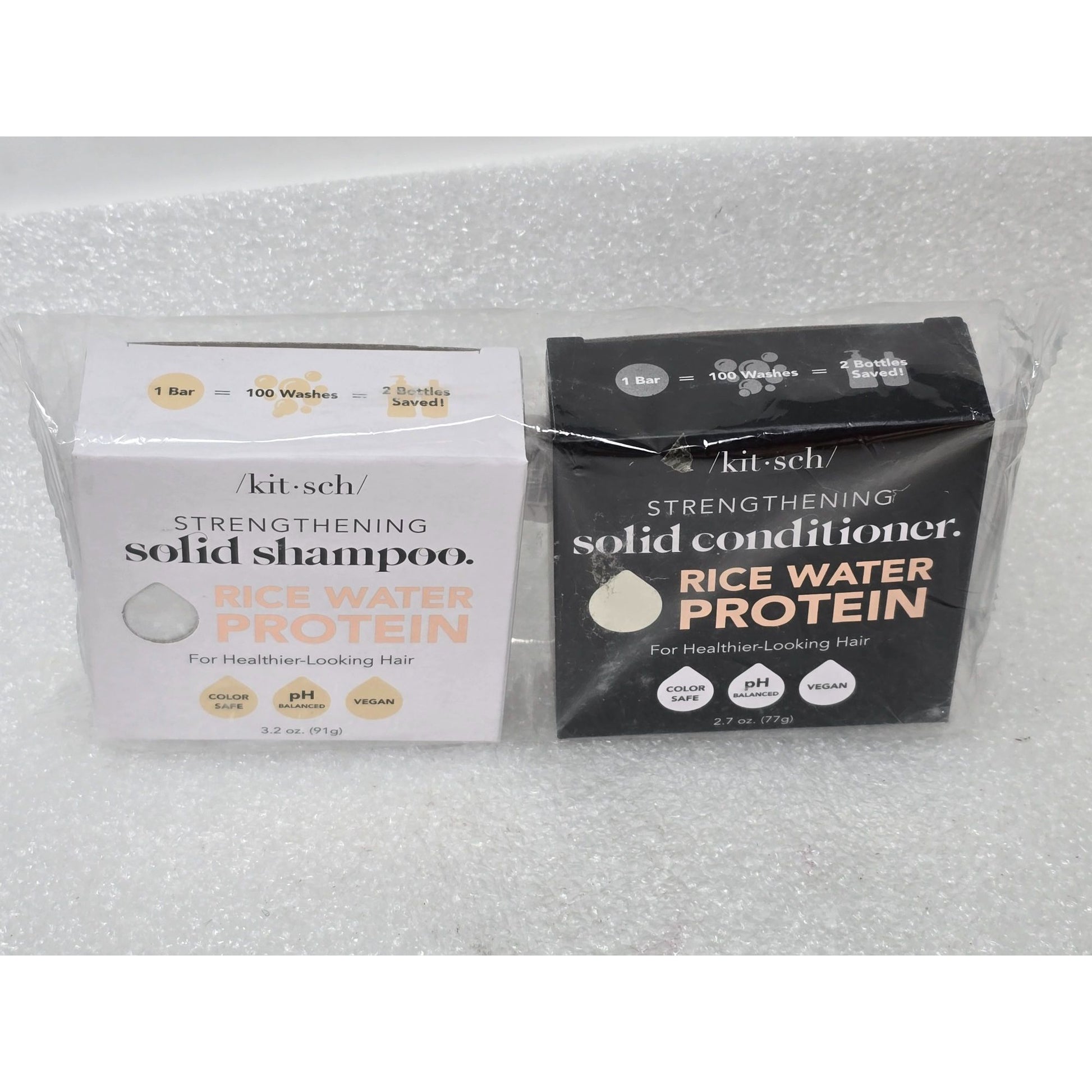 Kitsch Strengthening Solid Shampoo & Conditioner Rice Water Protein Bar Set